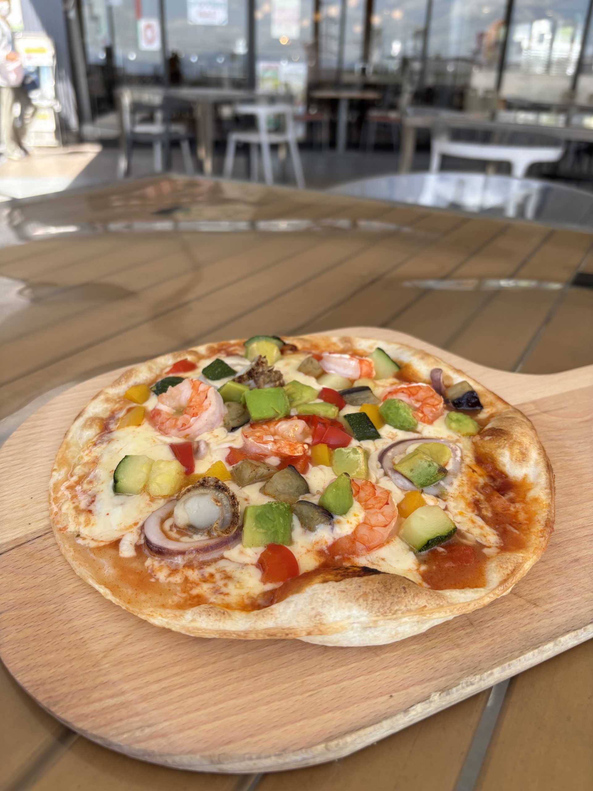 「海の幸ゴロゴロピザ」ぷりっとした海鮮を贅沢にトッピング。ひと口ごとに旨みが広がる一枚。海の恵みを、そのまま頬張る幸せ。