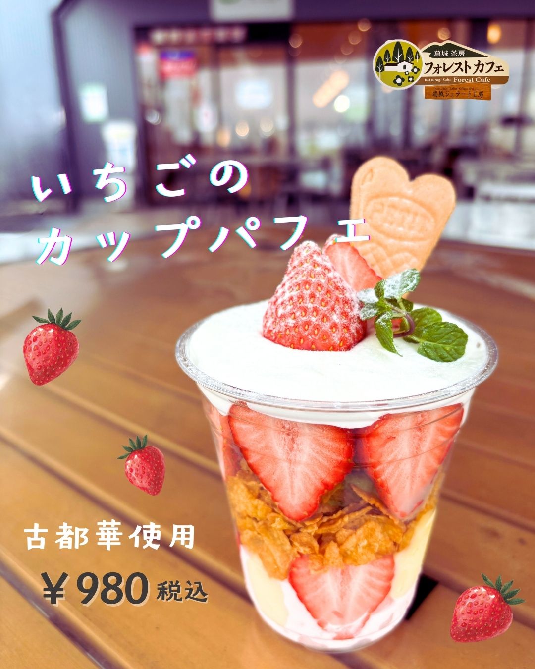 「いちごパフェ」今年も、人気のいちごパフェが始まります。奈良のいちごを使った、冬ならではの贅沢な味わいです。ぜひお楽しみください。